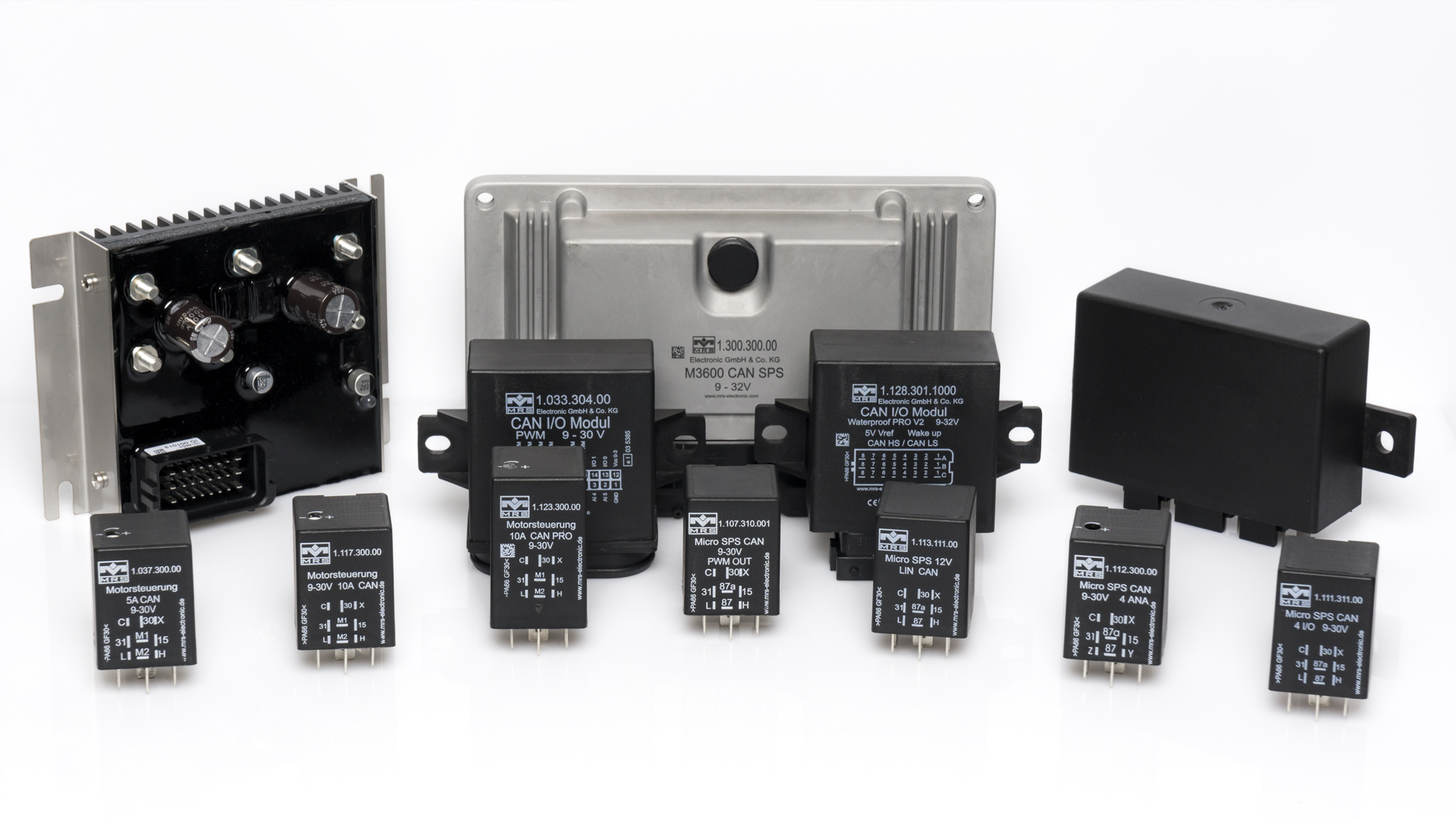 Our compact electronic controllers generally operate digitally and have inputs, outputs, and interfaces. Use these components to control your vehicle, machines or systems. A programmable memory allows individual control instructions to be stored and executed via outputs.